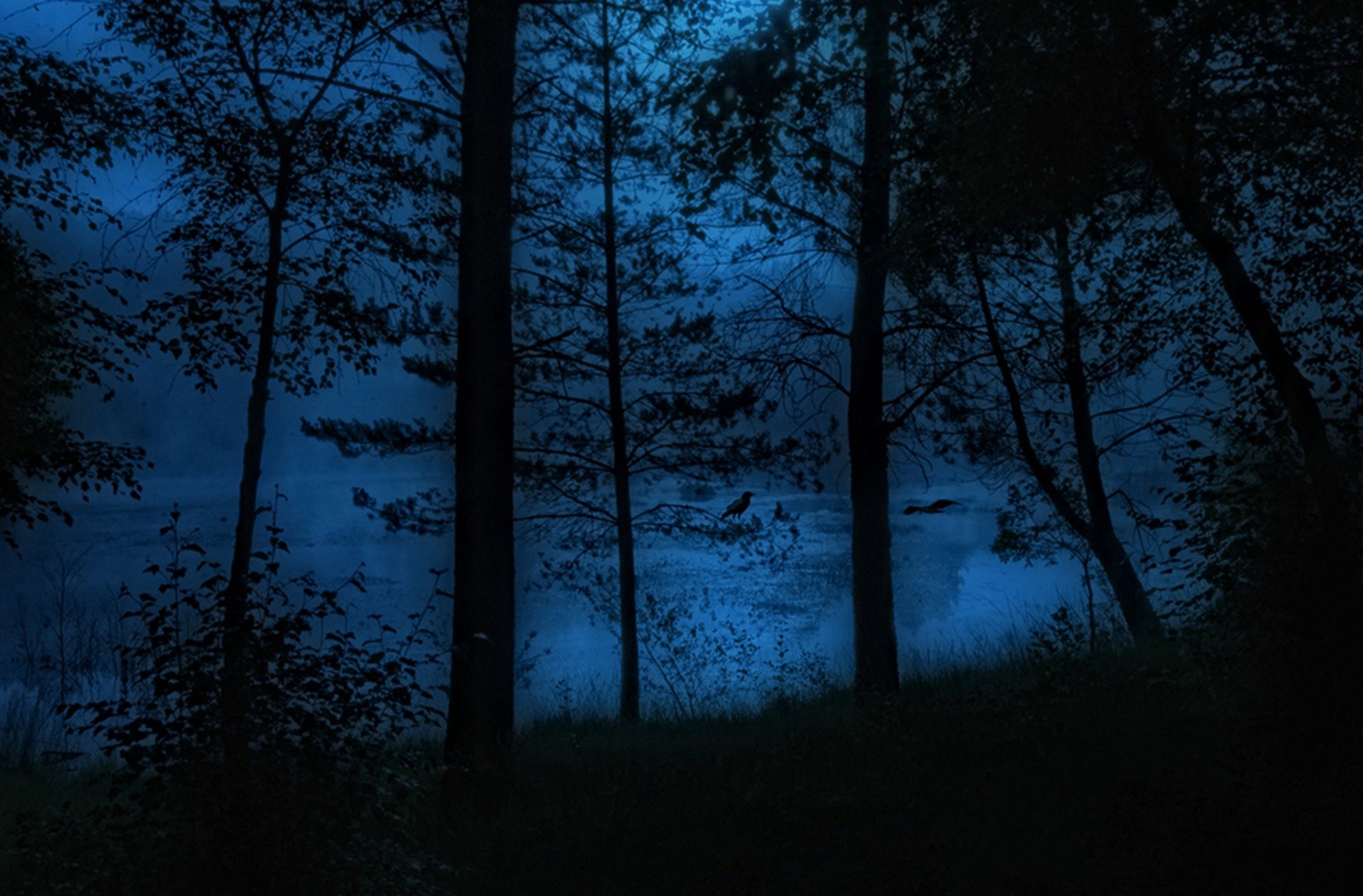 Previous Image Next Image Dark Night Forest Blue Desktop Wallpaper Green Dark Night Forest Blue Desktop Wallpaper Green